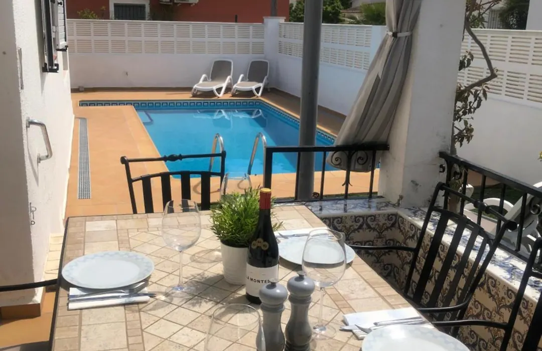Vakantiehuis Met Verwarmd Prive Zwembad Denia med 2 sovrum, som ligger inom 5 minuters promenad från Playa L'Almadrava, erbjuder gästerna en terrass.
